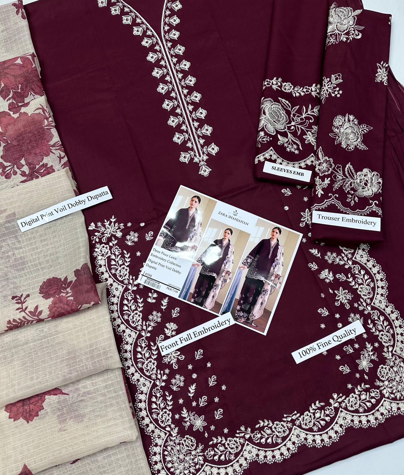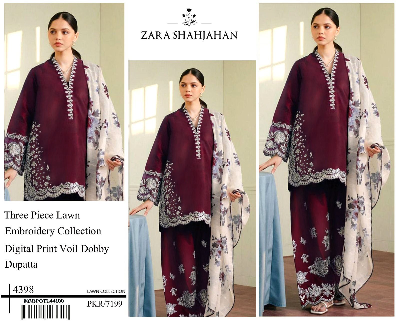 Ladies Lawn Embroidered Suit made with soft, airy lawn fabric and beautifully detailed embroidery. Designed for all-day comfort with a graceful look, making it a perfect choice for everyday wear or special occasions.